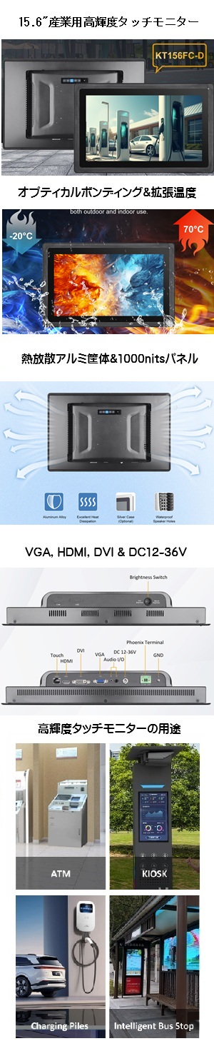商品分類一覧 産業用液晶ディスプレイ 産業用高輝度タッチパネル液晶ディスプレイ NEWAY KT156FC-D