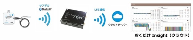 おくだけセンサー 子機×1台(子機は追加可能) おくだけセンサー 親機(NSX)×1式 [親機本体、アンテナ×3 ACアダプタ] おくだけ設定ツール(ビューワ機能付き) SIM×1式(*1GB相当のプランを想定) クラウドサービス利用料 外付け温度センサー |