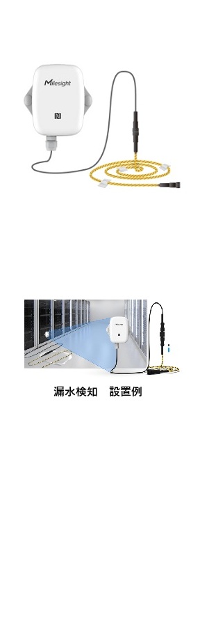 特長 ・長いケーブルと導電原理によって液体を検知 ・環境監視用、温度センサーと湿度センサー搭載 ・見通し距離10kmまでの超長距離伝送 ・過酷な環境用途向けの IP67 防水筐体及びUV耐性 ・内蔵の4000mAh 交換可能なバッテリーと 5年間動作交換なし ・3,000件の履歴レコード保存、再送信をサポートしてデータ損失防止 ・Milesight D2Dプロトコルで、ゲートウェイ無で超低遅延と直接制御が可能 ・NFC(近距離無線通信)搭載で設定が簡単 ・標準の LoRaWAN ゲートウェイおよびネットワークに準拠サーバー ・Milesight IoT Cloud ソリューションによる迅速かつ簡単な管理 ・壁への取り付け 適用 ・パイプ漏れ、地下室の浸水、ポンプ故障などのモニタリング及ぶ検知
