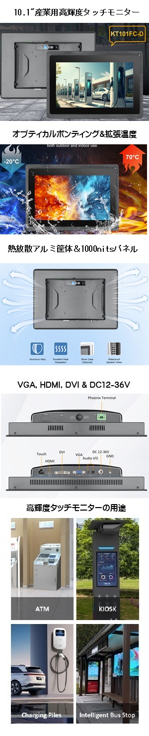 産業用高輝度タッチパネル液晶ディスプレイ NEWAY KT101FC-D |